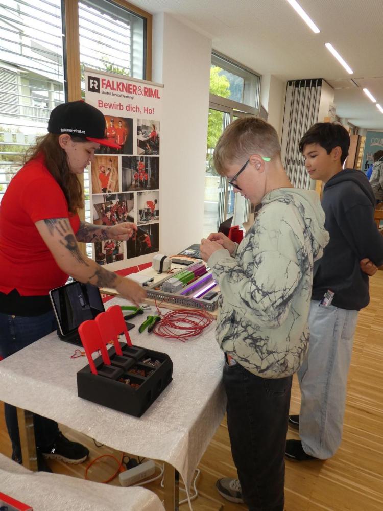 Unsere Schülerinnen und Schüler nutzten die Gelegenheit, mit Lehrlingen, Fachkräften und Ausbildnerinnen und Ausbildnern direkt ins Gespräch zu kommen. Besonders interessant waren die praktischen Mitmachstationen, bei denen die Jugendlichen selbst Hand anlegen und verschiedene Tätigkeiten ausprobieren konnten.