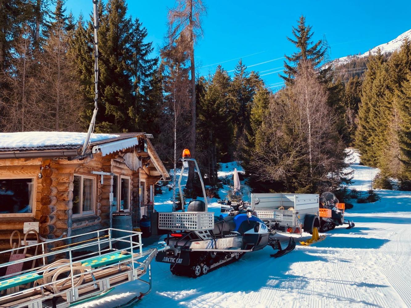 Als wir beim Fischteich ankamen, stand da eine große Überraschung, denn wir durften mit Skidoos rauf zur Gogles Alm fahren. Die Fahrt durch die verschneite Landschaft war sehr spannend und hat uns Spaß gemacht.