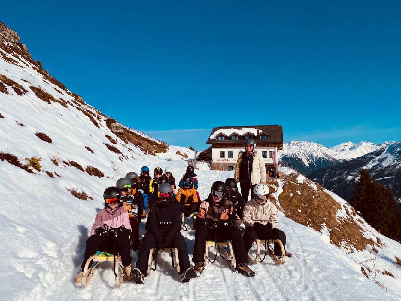 Danach kam der beste Teil des ganzen Tages, denn wir fuhren mit den Rodeln den Berg hinunter. Das war sehr lustig und manchmal auch ziemlich schnell. Am Ende waren wir sehr glücklich, aber müde. Es war ein sehr schöner Ausflug.