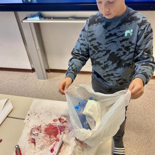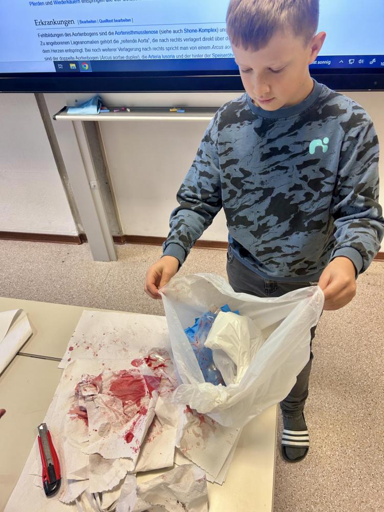 Die Klasse 1B zerlegte ein Auge und ein Herz vom Schwein