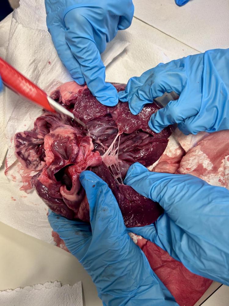 Ziel des Versuchs war es, den inneren Aufbau eines Herzens zu untersuchen und die verschiedenen Strukturen (Herzkammern, Herzklappen, Blutgefäße) zu erkennen. Dadurch sollte der Blutfluss im Herzen nachvollzogen und die Funktion der Klappen verstanden werden. Auch der Aufbau des Auges war sehr interessant, vorallem über die Flüssigkeit im Glaskörper wurde gestaunt.