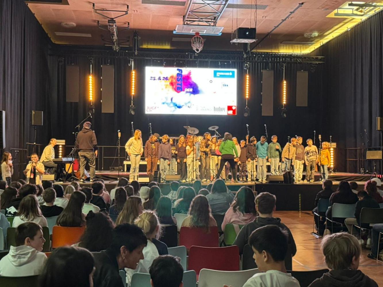 Die Schüler und Schülerinnen der Klassen 1ab folgten kürzlich der Einladung zum Fest der Stimmen. In der Musikmittelschule Imst Unterstadt, der als idealer Austragungsort fungierte, tauchten die Kinder in inspirierende Workshops ein und verfeinerten ihr gesangliches und rhythmisches Können.