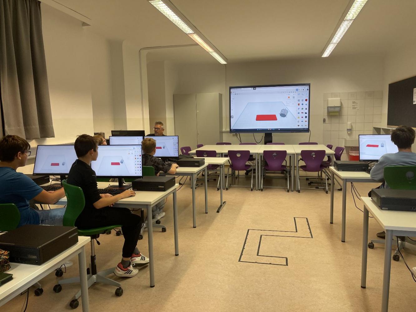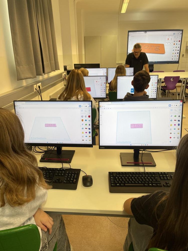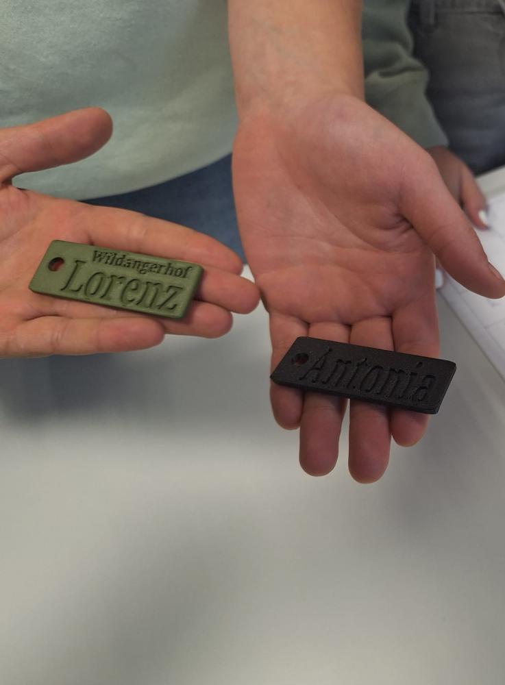 Im zweiten Teil des Vormittags standen Kreativität und Technik im Mittelpunkt: Am Computer entwarfen die Schüler:innen mit einem 3D-Zeichenprogramm ihre eigenen Schlüsselanhänger und konnten diese anschließend mit einem 3D-Drucker ausdrucken. So nahm jede und jeder ein ganz persönliches Erinnerungsstück an diesen lehrreichen und inspirierenden Tag mit nach Hause.