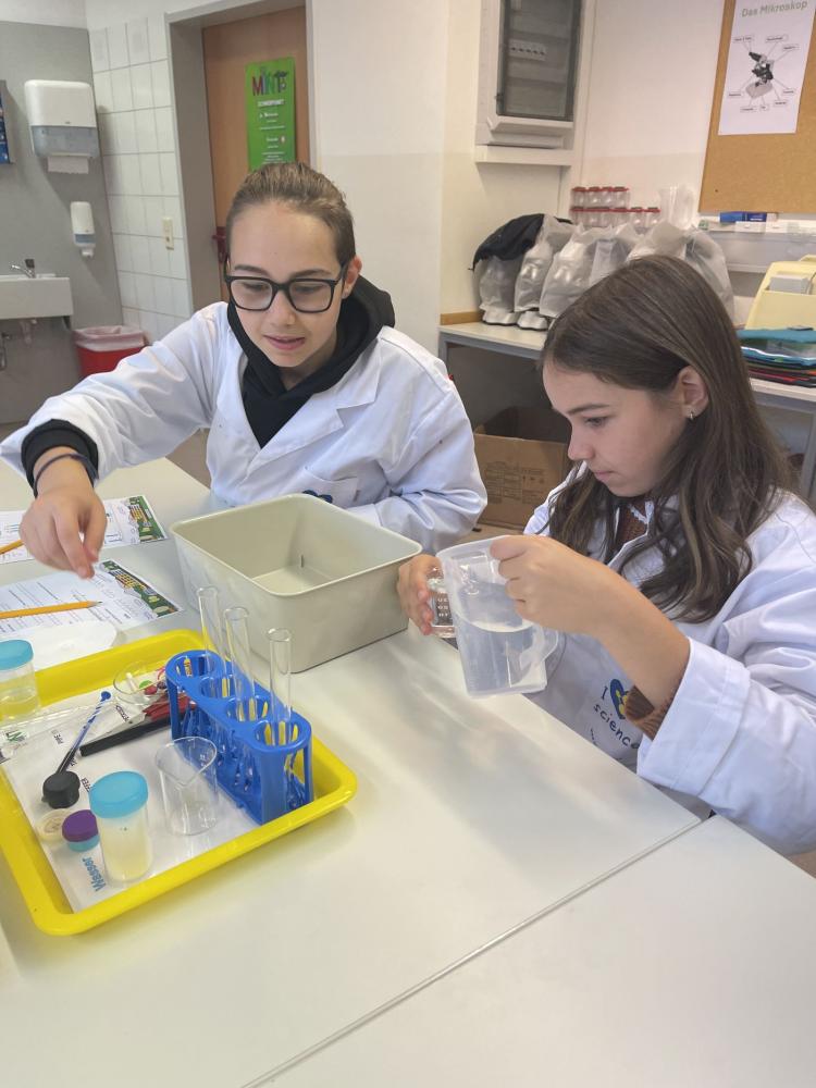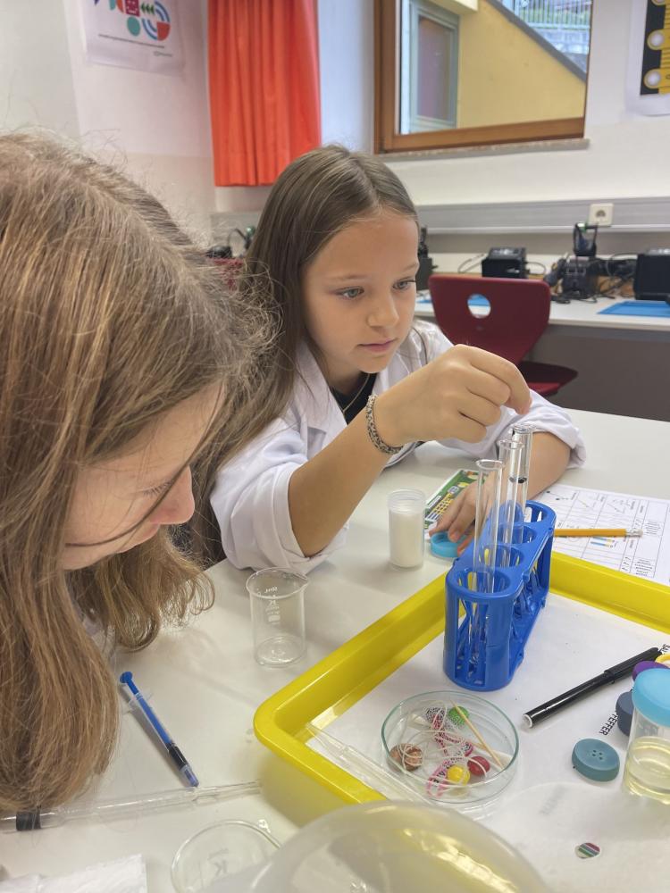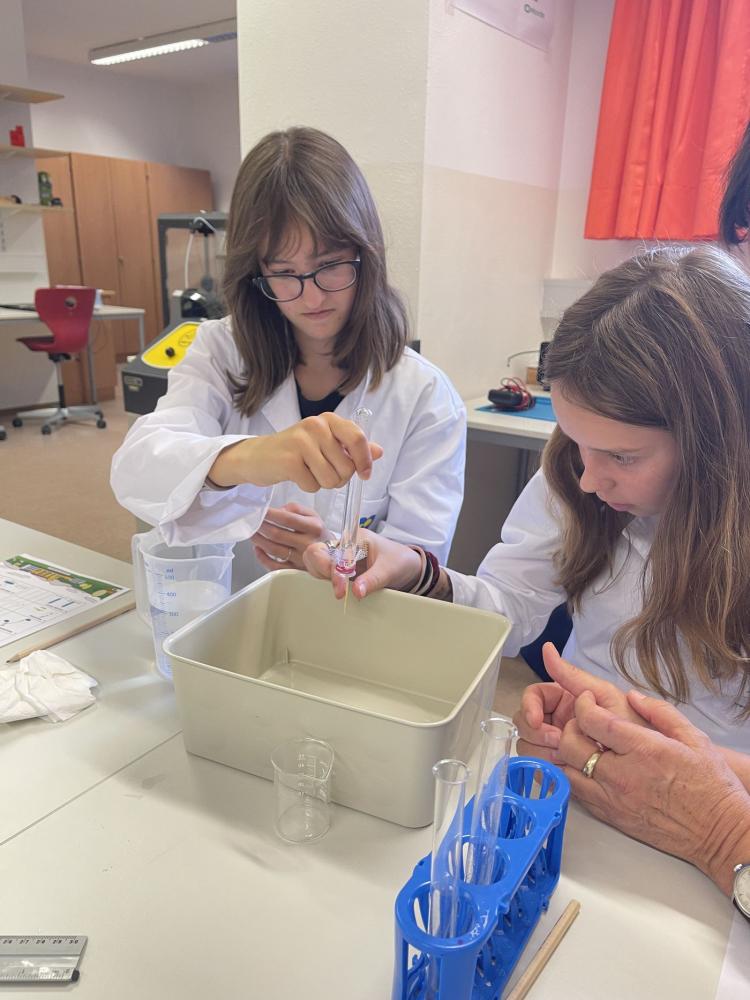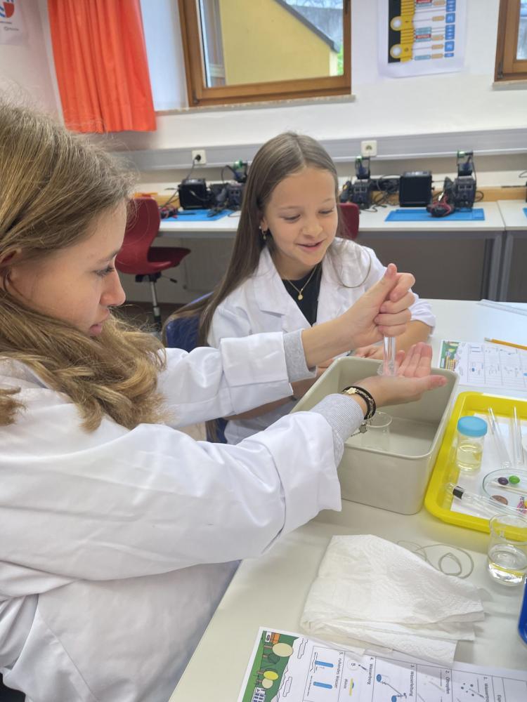 Dort durften die Schüler:innen selbst in die Rolle von Forscher:innen schlüpfen und spannende Experimente rund um das Thema Wasser durchführen. Mit viel Neugier führten sie Experimente durch, lösten knifflige Fragen und Rätsel zu den einzelnen Versuchsstationen und entdeckten dabei spielerisch naturwissenschaftliche Zusammenhänge.