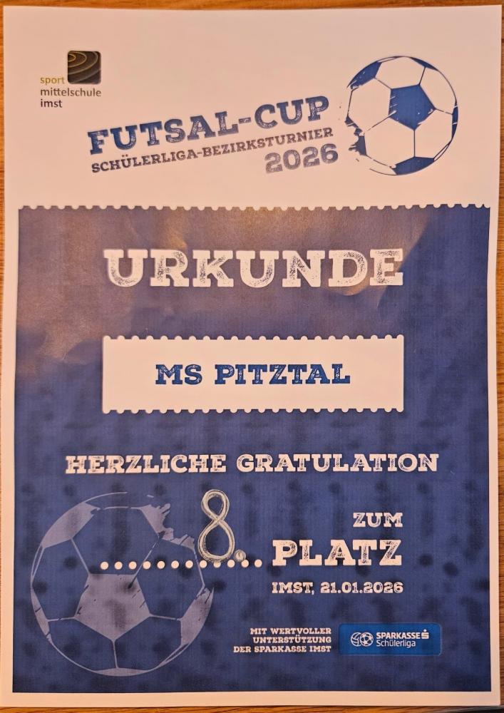 Nach einer unglücklichen 0:1 Niederlage gegen die MS Stams und einem 0:2 gegen die ITMS Imst gab es im dritten Spiel gegen die MS Sölden mit 1:0 den ersten Sieg ⚽ (Torschütze: Dominic aus der 1b). Gegen den späteren Turniersieger, die MS Längenfeld, waren wir dann chancenlos (0:4). Im letzten Spiel gegen die SMS Imst führten wir bis 30 Sekunden vor Schluss mit 1:0 aber dann fiel leider noch der 1:1 Ausgleichstreffer. Unser Tor erzielte Emilia aus der 2a ⚽.