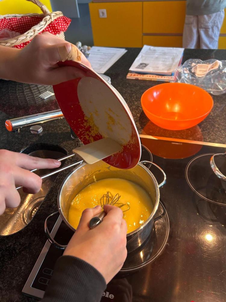 Working in small groups, the students measured ingredients, stirred carefully, and watched the mixture slowly turn into a creamy spread. Of course, all instructions and conversations took place in English, making the activity both educational and practical. Tasting and cooking together made learning English a hands-on experience and a lot of fun. The wonderful smell of lemons filled the room, and everyone was proud of the final result.
