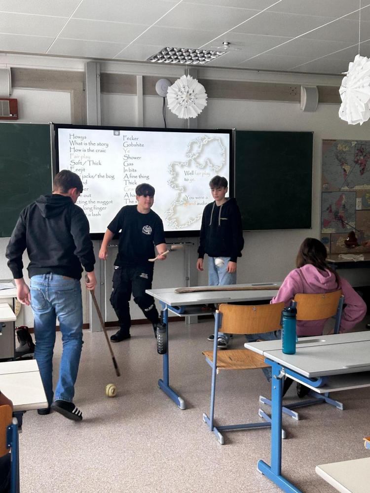 The workshop also explored Ireland’s well-known love-hate relationship with Britain. Students were encouraged to try the some kinds of sports themselves too.
