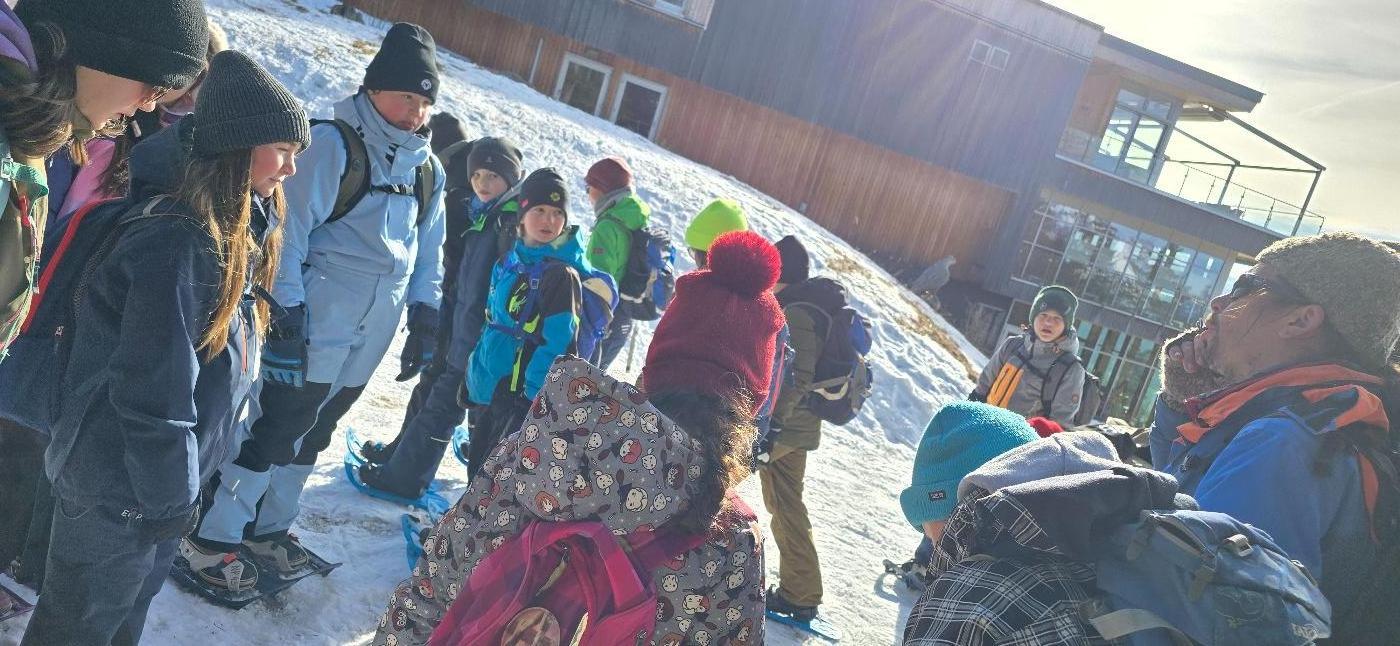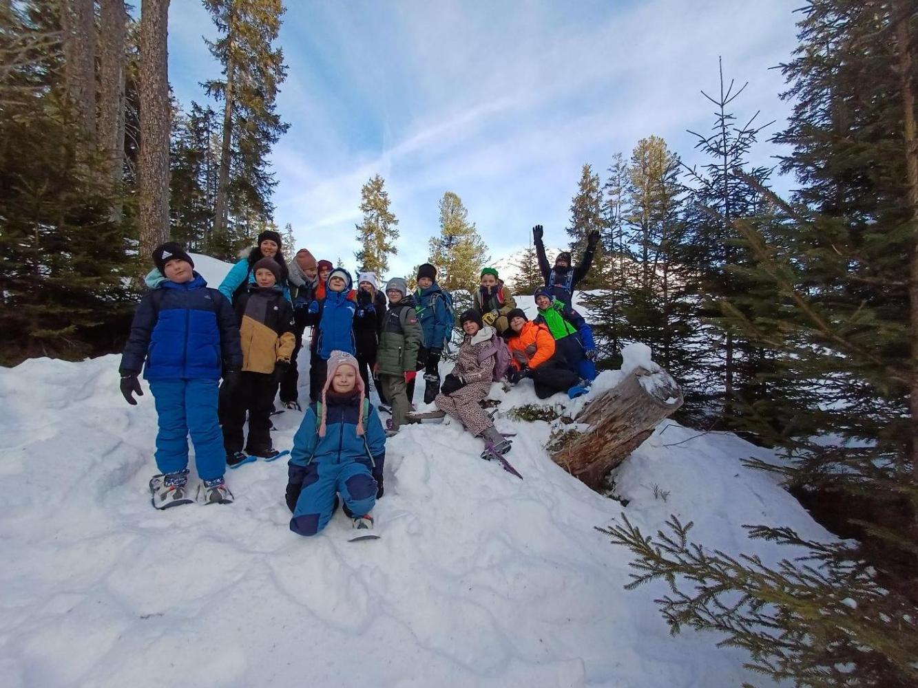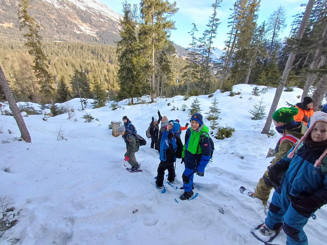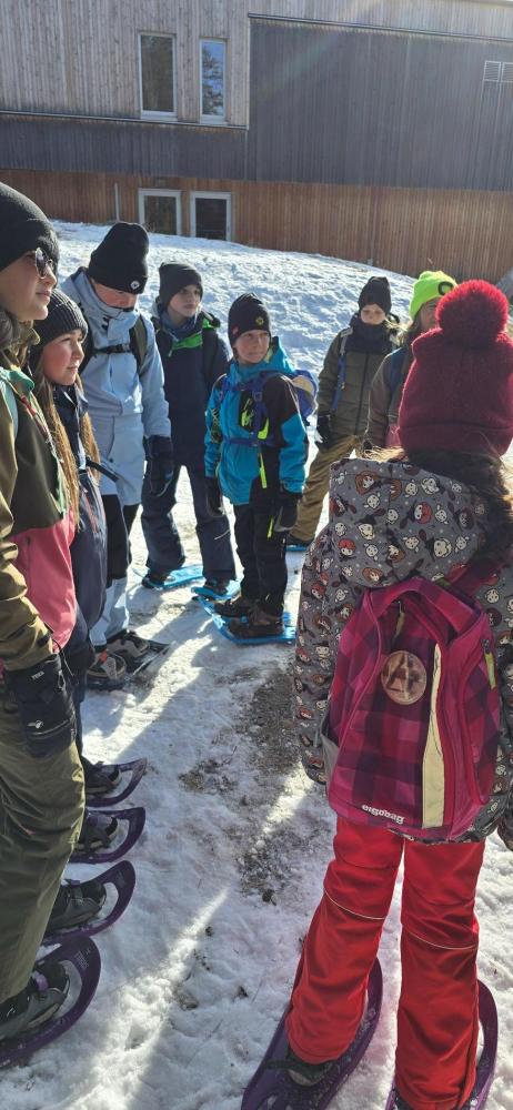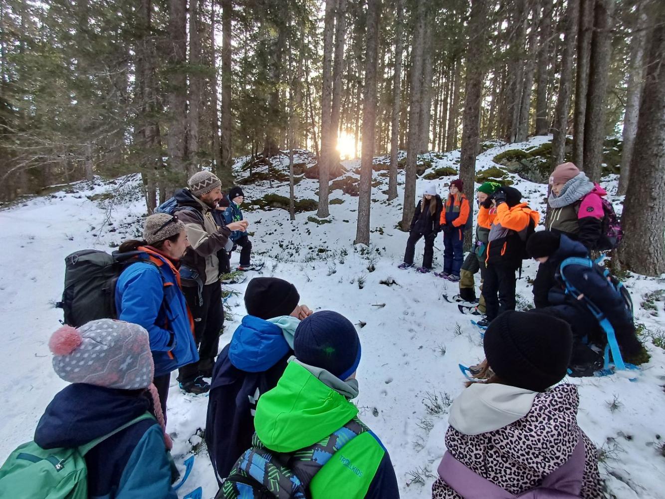 Bei klarer Winterluft begaben sich die Schülerinnen und Schüler mit Schneeschuhen auf eine spannendeWildtierspurensuche im frischen Schnee. Mit großer Begeisterung folgten sie den Fährten von Tieren und entdeckten die geheimnisvollen Zeichen des Waldes.