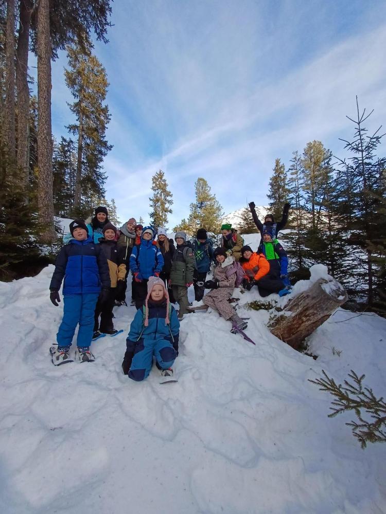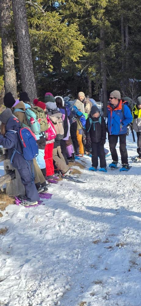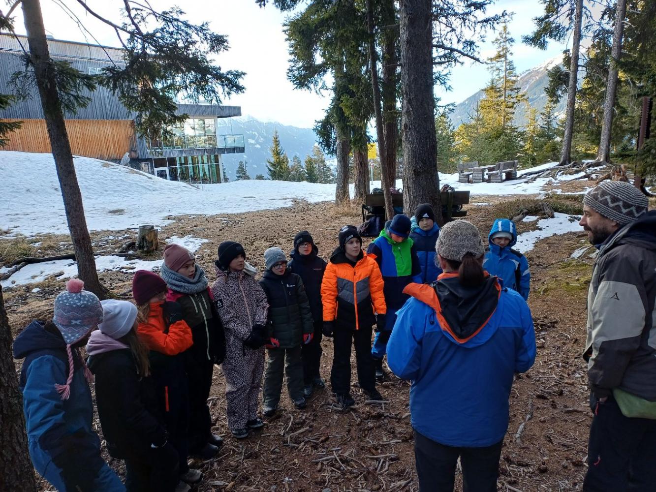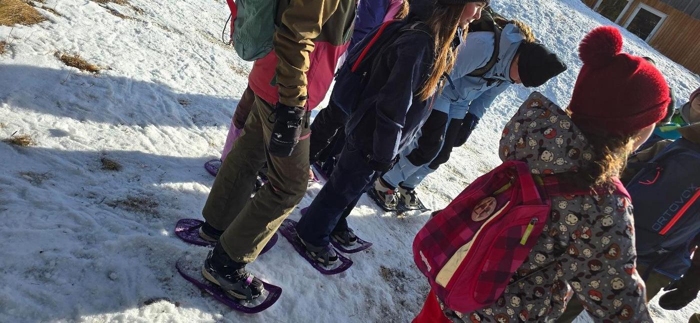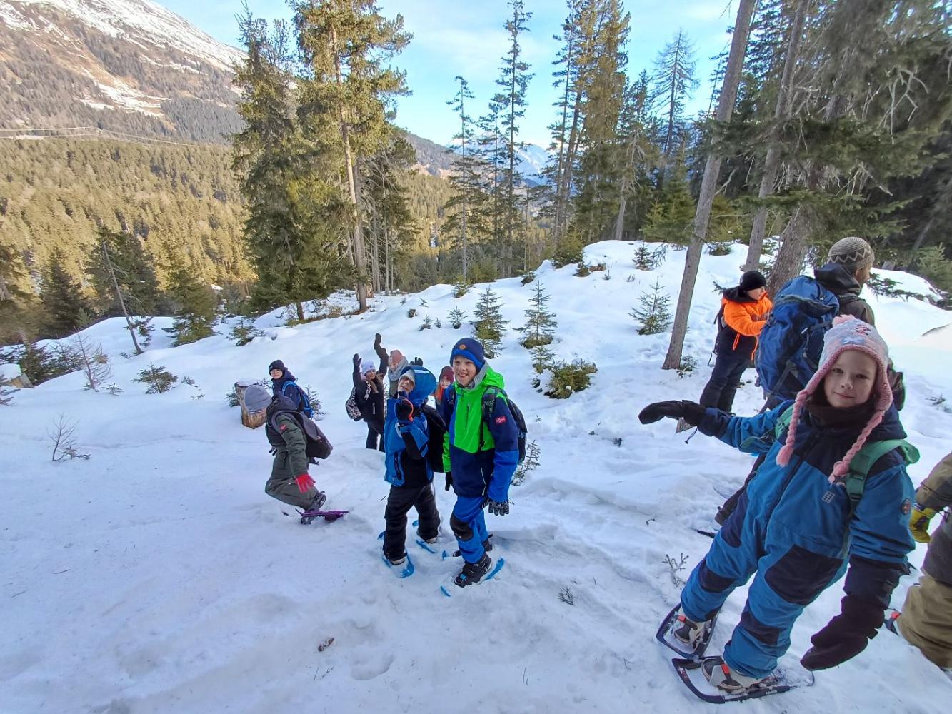 Bei klarer Winterluft begaben sich die Schülerinnen und Schüler mit Schneeschuhen auf eine spannendeWildtierspurensuche im frischen Schnee. Mit großer Begeisterung folgten sie den Fährten von Tieren und entdeckten die geheimnisvollen Zeichen des Waldes.