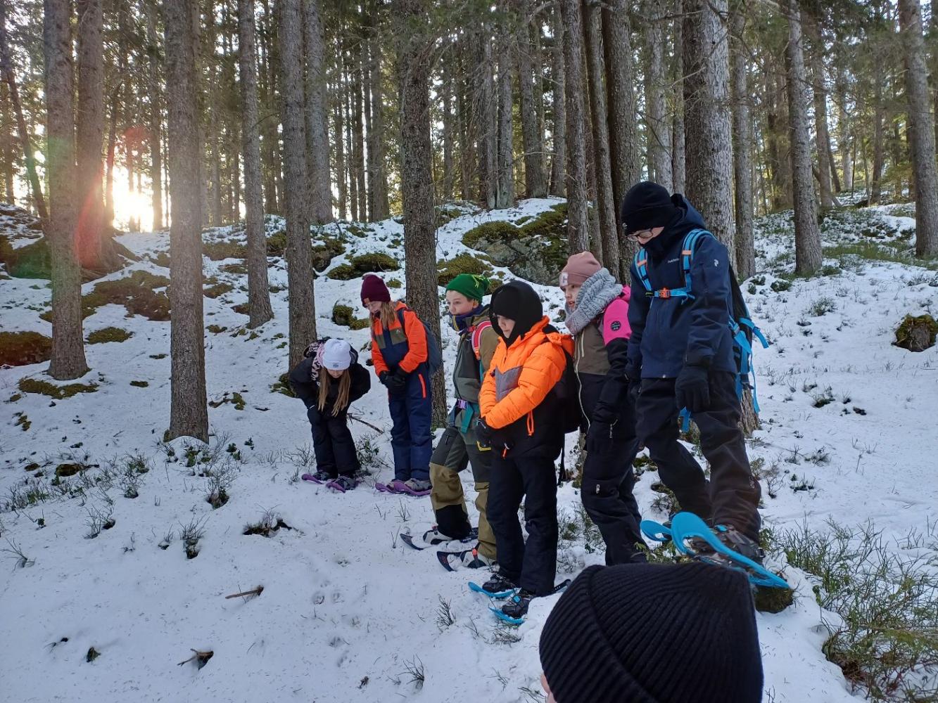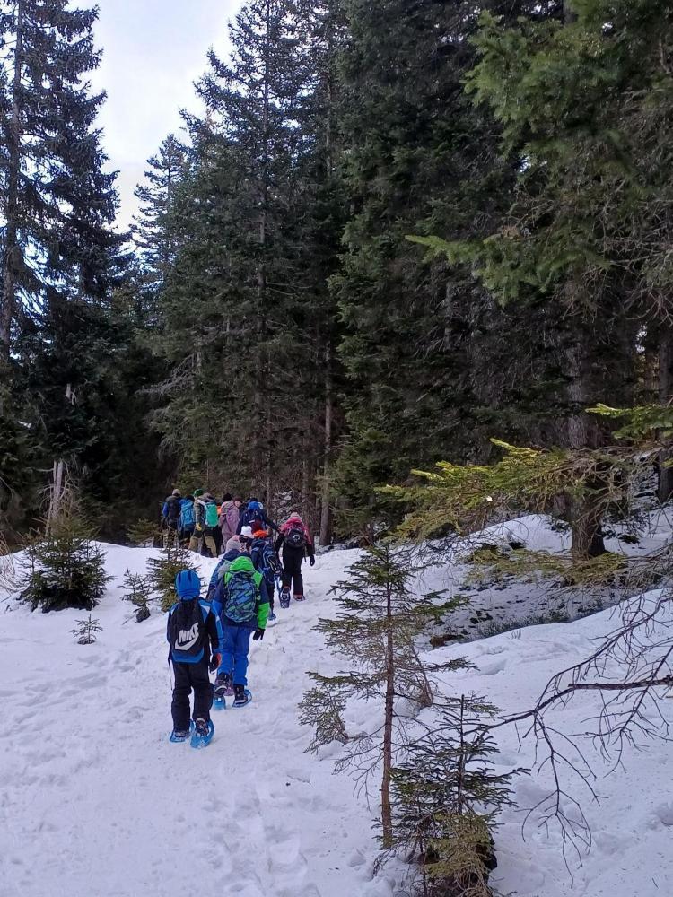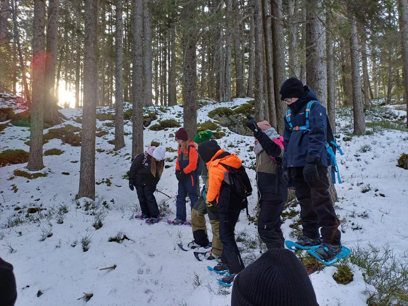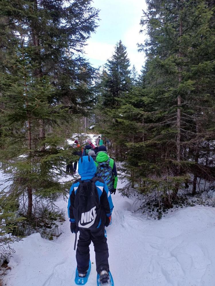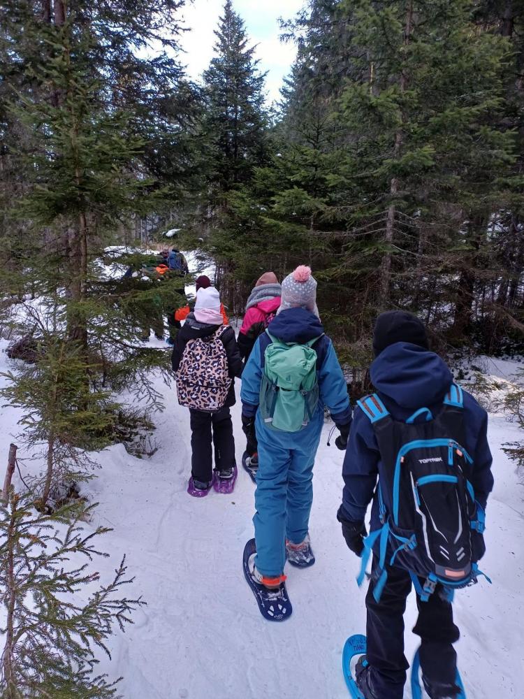 Bei klarer Winterluft begaben sich die Schülerinnen und Schüler mit Schneeschuhen auf eine spannendeWildtierspurensuche im frischen Schnee. Mit großer Begeisterung folgten sie den Fährten von Tieren und entdeckten die geheimnisvollen Zeichen des Waldes.